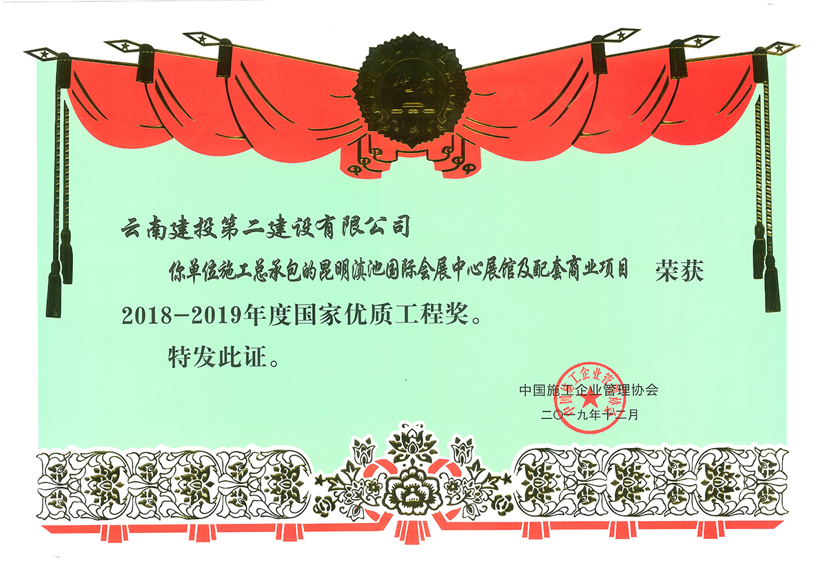 13 | 昆明滇池國際會(huì)展中心展館及配套商業(yè)項(xiàng)目 | 中國施工企業(yè)管理協(xié)會(huì) | 2018 | |
