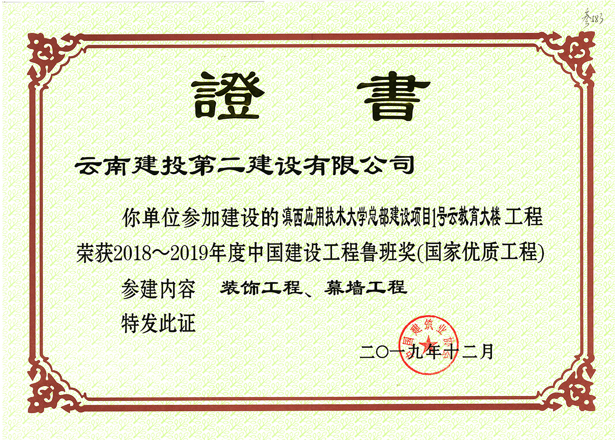 4 | 滇西應(yīng)用技術(shù)大學(xué)總部建設(shè)項(xiàng)目一號云教育大樓 | 中國建筑業(yè)協(xié)會(huì) | 2019 | |