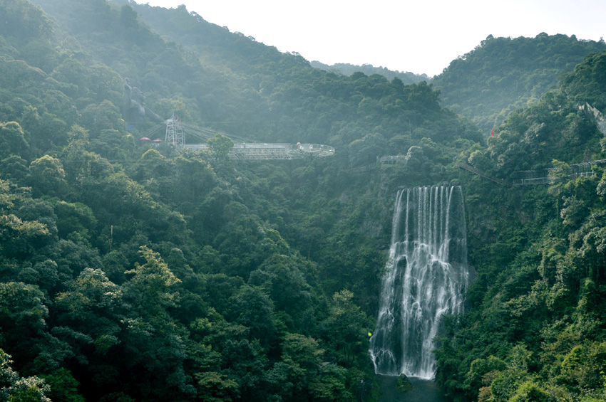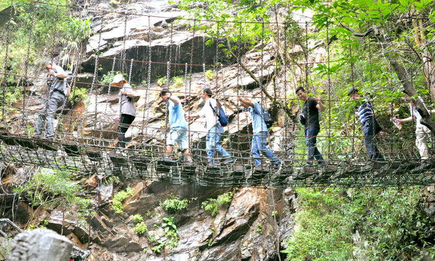 兩小時的小北江之游,大家都還余味未盡。導(dǎo)游又帶上大家趕往這次團建活動的重頭戲的目的地:古龍峽的“云天波霸”。今天公司參加團建的所有員工都要挑戰(zhàn)目前世界上較寬的高空玻璃橋,玻璃橋像一條通體透明的巨龍連接著峽谷兩岸,橋下懸空超過100米,站在橋上向下看,真是令人心驚膽戰(zhàn),大家相互鼓勵,三三兩兩牽手前行,用相互的關(guān)愛順利通過并成功抵達(dá)世界較大直徑的懸空玻璃平臺。盡管大家都汗流浹背,但每個人臉上都洋溢著喜悅。因為此時大家都收獲了克服恐懼心理后戰(zhàn)勝困難的勇氣和成功!