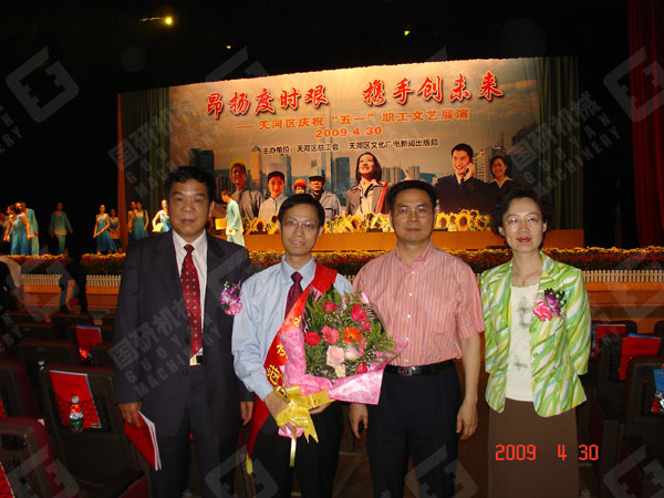 4月28日上午,廣州市委大禮堂張燈結(jié)彩、鑼鼓喧天,一派喜氣洋洋。廣州市委、市政府慶祝“五一”國際勞動節(jié)暨勞動模范和先進集體表彰大會在這里舉行。廣州市國研機械設(shè)備制造有限公司市場部經(jīng)理劉啟剛同志作為天河區(qū)6萬多家民營企業(yè)唯一當(dāng)選的廣州市勞動模范出席了表彰大會。廣東省委常委廣州市委書記朱小丹、市長張廣寧等省市領(lǐng)導(dǎo)親自為劉啟剛等勞動模范頒發(fā)廣州市勞動模范獎狀和榮譽證書并合影留念。