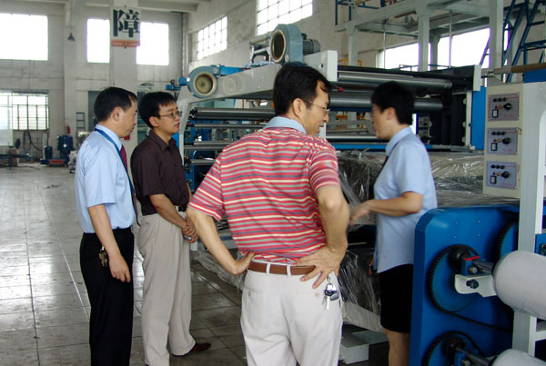 杜黨勇書記一行在公司黨支部書記、副總經(jīng)理王聲躍、副總經(jīng)理陳蓓的陪同下參觀了公司廠容廠貌和生產(chǎn)車間,在參觀過程中,杜書記不時詳細(xì)詢問公司的生產(chǎn)經(jīng)營情況,并仔細(xì)了解各類機(jī)器的性能特點(diǎn),當(dāng)來到公司深入學(xué)習(xí)實(shí)踐科學(xué)發(fā)展觀活動的宣傳欄時,杜書記不禁駐足認(rèn)真欣賞起來,連說:很好,辦的不錯。