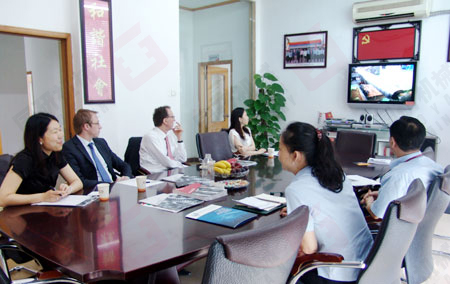 Becker 博士一行在公司領(lǐng)導(dǎo)的陪同下觀看公司發(fā)展歷程影視片
