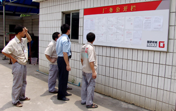 國研機(jī)械員工正在觀看廠務(wù)公開欄