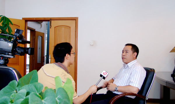 廣州電視臺(tái)記者正在采訪公司董事長(zhǎng)王聲位