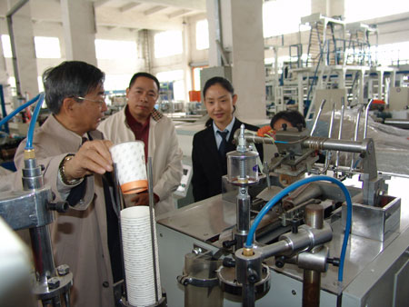 張教授一行聽取了總經(jīng)理王聲位的匯報(bào),并在公司總經(jīng)理王聲位,副總經(jīng)理、黨支部書記王聲躍的陪同下對(duì)我司總部、塑料機(jī)械廠、食品機(jī)械廠進(jìn)行參觀指導(dǎo)。在塑料機(jī)械成品展廳,張教授在詳細(xì)了解塑料機(jī)械的生產(chǎn)工藝后,對(duì)我司塑料機(jī)器的功能頗為贊賞,對(duì)我司機(jī)器的環(huán)保性能給予了充分的肯定,并對(duì)我司產(chǎn)品的設(shè)計(jì)及發(fā)展方向提出了具體的要求和建議。