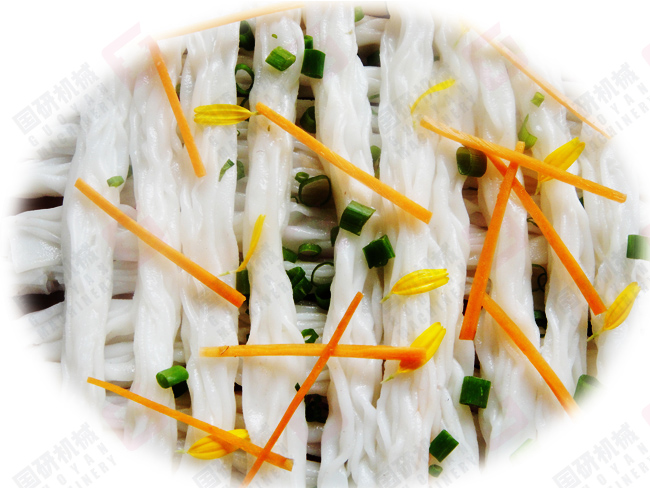 廣東拉腸粉具有白如雪、薄如紙、油光閃亮、香滑可口等特點(diǎn)。又因方便快捷,拿起即食的優(yōu)點(diǎn),廣受早餐時間匆忙的上班族喜愛。而傳統(tǒng)純靠蒸盤一張一張蒸片刮成型,生產(chǎn)效率低,勞動強(qiáng)度大,無法量產(chǎn),從而錯過銷售了高峰期的客流量。廣州國研機(jī)械正是看準(zhǔn)了此商機(jī),早在二十年前便已經(jīng)在河粉的基礎(chǔ)上增加了自動的拉腸粉成型機(jī),讓商家除了可生產(chǎn)拉腸粉外,有多余的時間還可生產(chǎn)河粉,涼皮等產(chǎn)品,一機(jī)多用,讓銷售市場更多元化,獲得更多的利潤。