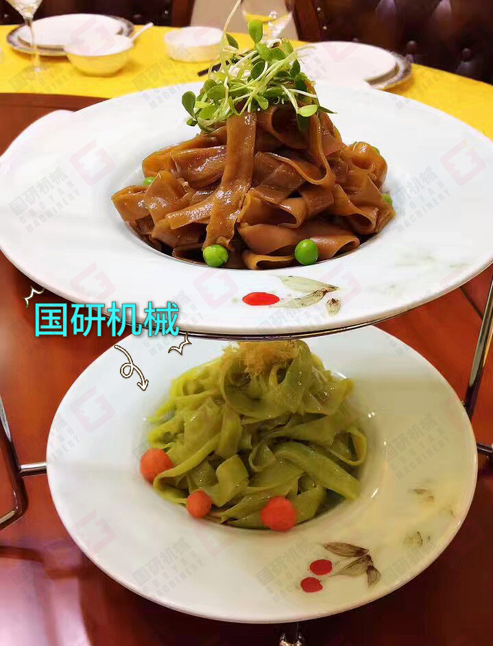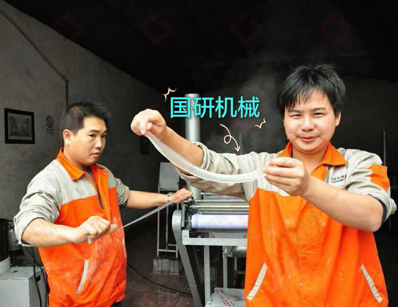 5、該機生產(chǎn)的拉皮、粉皮厚薄可任意調(diào)節(jié),保全了原料的全部營養(yǎng)成份,味道鮮美,清亮剔透。