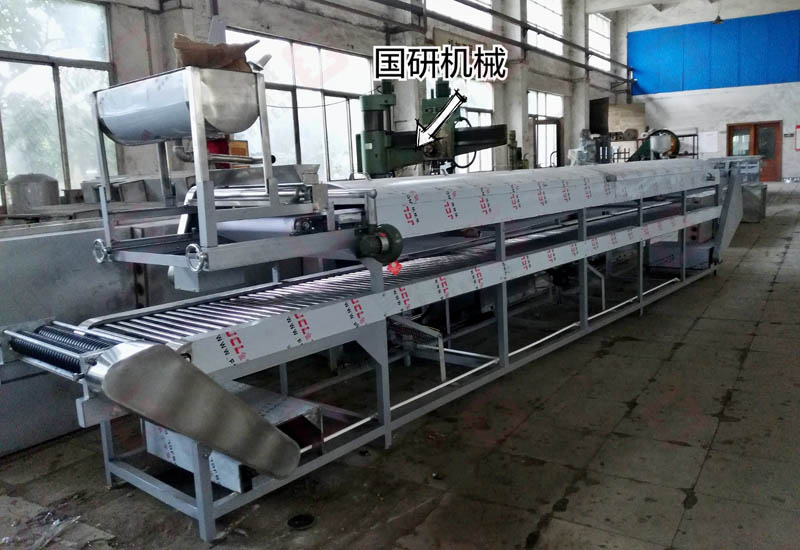 國研牌東北大拉皮機(粉皮機)采用自動下漿、蒸汽蒸熟,自動淋水分離 ,自動切條、切片(根據(jù)客戶的需要訂制)。生產(chǎn)過程可不需要專人操作,自動化生產(chǎn)。生產(chǎn)的拉皮晶瑩剔透,韌性強,口感好,生產(chǎn)效率高。每公斤淀粉可生產(chǎn)拉皮4.5-5.5公斤,該系列產(chǎn)品有多個規(guī)格,適合不同投資規(guī)模的客戶需求,辦食品加工廠,餐飲連鎖店,單位或?qū)W校食堂適用。